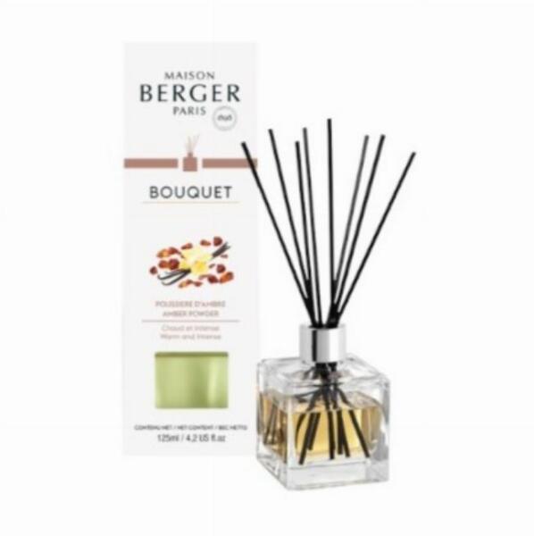 Maison Berger pálcás diffúzor 125ml - Púderes Ámbra Púderes Ámbra: A púderes ámbra egy érzéki illat, mely a tereknek belsõséges hangulatot ad. Fűszeres jegyei fokozzák a rózsa eleganciáját, majd az ámbra érzéki szépségét pedig a szantálfa és a pacsuli emeli ki. Végül egy fehér pézsma fátyol borul a balzsamos és a vaníliás alapjegyekre. Fej: rózsa, fahéj, bors Sz