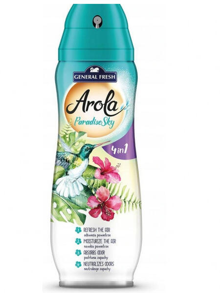 Az Arola Paradise Sky légfrissítő egy egzotikus, trópusi hangulatot idéző illatot kínál, amely frissességet és egy kis "nyaralásérzést" csempész a mindennapokba. Jó választás lehet, ha kellemes, gyümölcsös-virágos illatot szeretnénk otthonunkba, vagy egyéb tereinkbe. Használat előtt alaposan rázzuk fel a flakont, hogy az illatanyag egyenletesen oszoljon el a spray-ben. A