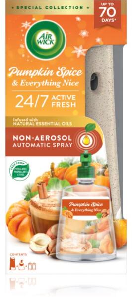 Air Wick Active Fresh Pumpkin Spice & Everything Nice, 228 ml, Légpárásítók Illatok lakásba, Az illatot fokozatosan felszabadító Air Wick Active Fresh Pumpkin Spice & Everything Nice automata légfrissítő otthonának helyiségeit úgy tölti meg folyamatosan kellemes illattal, hogy közben a nem kívánt illatokat és szagokat is semlegesíti. Tulajdonságok: fűszeres aroma éde