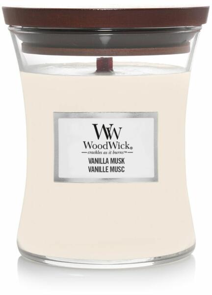 Vanilla Musk illatgyertya 'közepes' Könnyed és légies, jegyeiben rózsaszín só, fehér virágok és kókusztej található, ami egyedi megközelítést jelent a vanília illatában. Méret: 10 x 11 cm Illat jellege: Ínyenc Fej: rózsaszín só, bergamott, pézsma Szív: jázmin, gyöngyvirág, vanília, dohány Alap: borostyán, kókusztej, szantál, heliotrop, tonkabab Égési idõ: 55 - 6