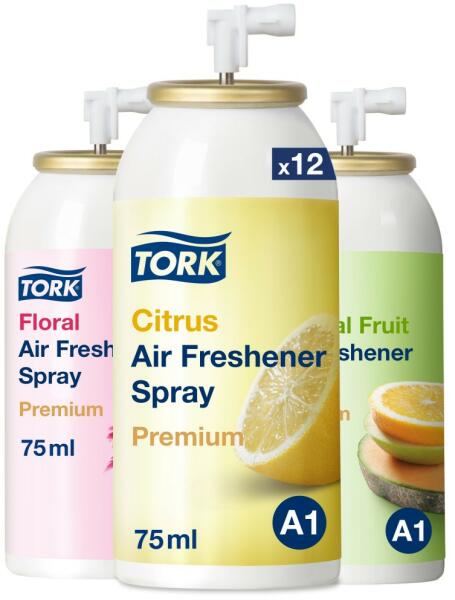 Kezelje eredményesen és hatékonyan a kellemetlen mosdóhelyi szagokat A spray koncentrált illóolajat és saját fejlesztésű szagsemlegesítő anyagokat tartalmaz, így megszünteti a kellemetlen szagokat, és hosszan tartó, friss illatot biztosít. A spray a Tork illatosítóspray-adagolóval együtt használható. Felhasználás előtt mindig olvassa el a termék címkéjét is, és a fel