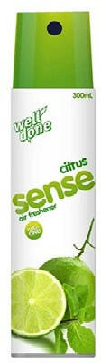 Légfrissítő Well Done Citrus 300 ml minőségi illatú hajtógázas illatosítószer, mely hatékonyan semlegesíti a kellemetlen szagokat a bepermetezett helyiségekben