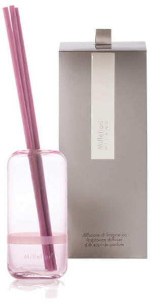 A lágyan színezett rózsaszín üveg fényűző, letisztult dizájnja finom itáliai ízt kölcsönöz otthonának vagy munkahelyének. A diffúzor mérete különösen alkalmas közepes helyiségekben. Az illatos patron nem része a csomagnak, sok illatú utántöltő széles választéka közül választhat.