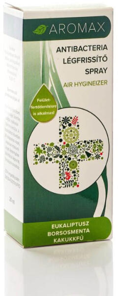 Aromax légfrissítő spray eukaliptusz-borsmenta-kakkukfű 20 ml Az ANTIBACTERIA Eukaliptusz-Borsosmenta-Kakukkfű sprayről bővebben Javasolt alkalmazás: használatát elsősorban a megfázásos, téli időszakban, de füstös, nehezen szellőztethető helyiségek levegőjének frissítésére az év bármely szakában ajánljuk. Az Antibacteria (korábban AF) légfrissítő sprayk kiváló mi