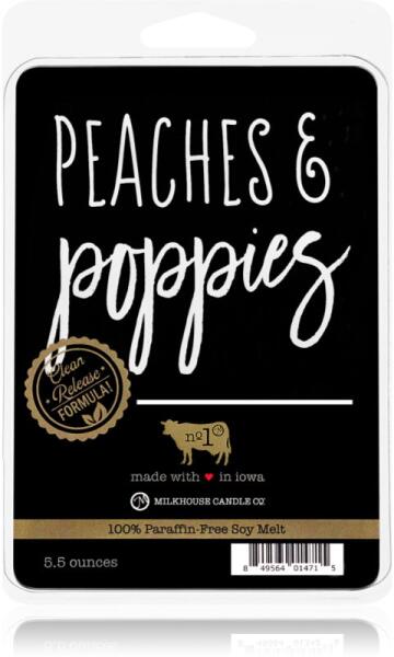 Milkhouse Candle Co. Farmhouse Peaches & Poppies, 155 g, Viasz aromalámpába Illatok lakásba, A lehető legjobb illathatás Milkhouse Candle Co. aromalámpa viasszal érhető el a helyiségben. Mivel a viasz gyorsan és egyszerűen más illatú viaszra cserélhető, bármikor pontosan a hangulatához illő illatot varázsolhat maga köré. Tulajdonságok: gyümölcsös illat édes aroma Öss