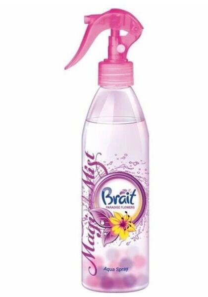 A könnyű és élénkítő ködpermet az alkalmazott területen semlegesíti a kellemetlen szagokat, felfrissíti a levegőt és üde, kellemes illatot hagy maga után. Természetes formulájának köszönhetően használható szövetek frissítésére is (ruhák, függönyök, kárpit). vízes bázisú légfrissítő 425gLégfrissítő szórófejes 425 g Paradise Flowers Brait termék alkalmazá