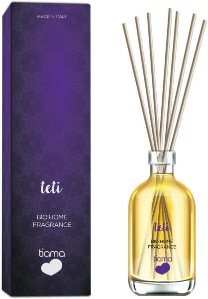 BIO ECO COSMESI tanúsítványMűanyag mentesVegán Szenvedélyes finom szirmok, amelyek egybefonódnak virágillattal. Virágos és szenvedélyes illat, 100% műanyag mentes, Bio- és vegánbarát, Ökológiai, fenntartható és újrahasznosítható csomagolás. Tiama Bio pálcikás illatosító Teti 100 ml - pálcikás légfrissítő koncentrátum - Legfeljebb 15 m2-es helyiségekhez alkalmas. N