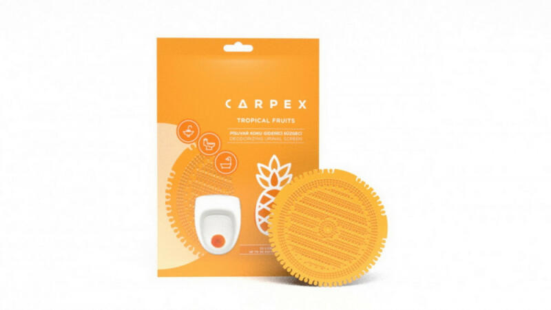 Piszoár illatosító rács Carpex, tropical (narancssárga) - Piszoár illatosító rács Carpex Wave, TROPICAL (narancssárga) - Környezetbarát anyagból készült illatosított piszoár szűrő rács. - Megakadályozza a kellemetlen szagok kialakulását és friss illatot varázsol a mellékhelyiségbe. - Bármilyen piszoárban egyszerűen használható, a lágy szilikon gumi kiválóan illes