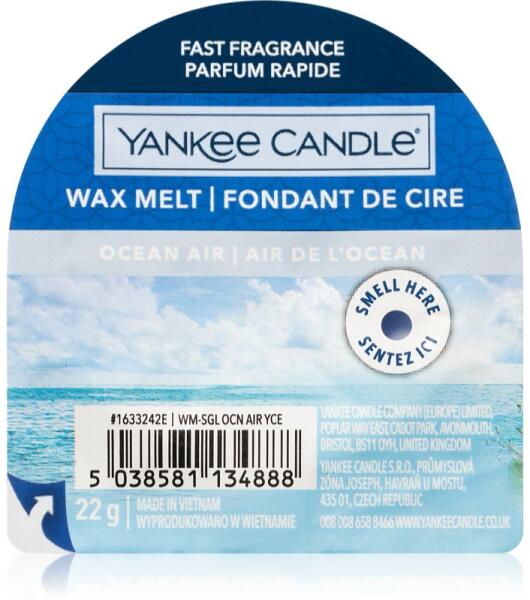 Yankee Candle Ocean Air, 22 g, Viasz aromalámpába Illatok lakásba, A lehető legjobb illathatás Yankee Candle Ocean Air aromalámpa viasszal érhető el a helyiségben. Mivel a viasz gyorsan és egyszerűen más illatú viaszra cserélhető, bármikor pontosan a hangulatához illő illatot varázsolhat maga köré. Tulajdonságok: friss illat légies tiszta illat Használata: Az aromalámpába