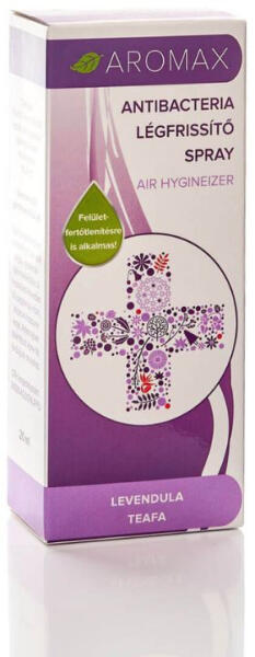 Aromax légfrissítő spray levendula-teafa 20 ml Az ANTIBACTERIA Levendula-Teafa sprayről bővebben Javasolt alkalmazás: lakószobákban, közösségi terekben ajánljuk használatát, elsősorban a megfázásos, téli időszakban, de dohányfüstös, nehezen szellőztethető helyiségek levegőjének frissítésére, semlegesítésére az év bármely szakában alkalmazható. Az Antibacteria (