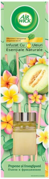 Air Wick Pálcikás légfrissítő folyadék Az Air Wick Pálcikás légfrissítő rattan pálcikáin keresztül juttatja a levegőbe csodálatos illatait. Teremtsen hívogató hangulatot otthonában elragadó illataival és elegáns megjelenésével. Engedd, hogy a mézédes dinnye és az egzotikus frangipani illatai varázslatossá tegyék otthonod! Akár 4 hétig tartó illat. Jellemzők:Akár