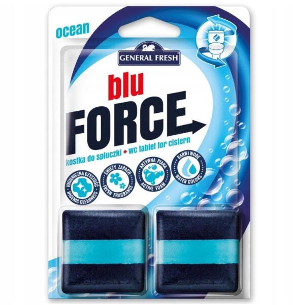 WC TARTÁLY TABLETTA/ILLATOSÍTÓ 2 DB/CSOMAG BLUE FORCE TENGER A Blue Force Óceán WC tartály tabletta egy hatékony termék, amelyet a WC tartályba helyezve segít tisztán tartani a WC-csészét, friss illatot biztosítva és megakadályozva a vízkőlerakódást. Főbb jellemzők: Tartós tisztítás: Minden öblítésnél automatikusan tisztítja a WC csészét, megelőzve a lerakódások
