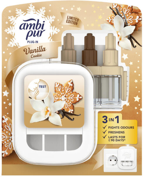 Az Ambi Pur 3Volution Vanilla Cookie okos programozású illatpárologtató készülék folyamatosan küzd a kellemetlen szagok ellen, és váltogatja a 3 egymást kiegészítő illatot, hogy a frissesség mindig érezhető legyen. Akár 90 napon át tart (alacsony fokozaton, napi 12 órás használat mellett). Fedezze fel most a Vanilla Cookie szépséges illatát, digitálisan vezérelt illatvá