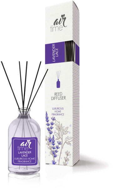 Az Air Time Reed Diffuser Lavender Lace aromadiffúzor, amely minden otthonba alkalmas, illatosítja az egész belső teret, és a jólét és a pihenés légkörét teremti meg. A természetes rattan pálcikák illóolajat szórnak a levegőbe, és akár hét hétig tartó folyamatos illatosítást biztosítanak, így minden térben kellemes, pihentető és jó közérzetet nyújtó légkört ter