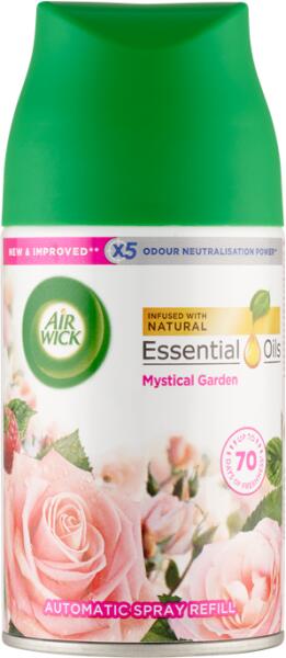 Air Wick Freshmatic Automata légfrissítő utántöltő - Titokzatos kert Tedd kellemesebbé a hangulatot a Freshmatic Titokzatos kert automata légfrissítő üdítő illatával. A légfrissítő szabályos időközönként juttatja a levegőbe az illatot. Állítsd be a kívánt illaterősséget, és élvezd a Titokzatos kert illatát otthonodban akár 60* napon át. Termékleírás természete