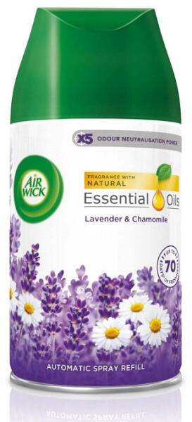 Fokozza otthona illatélményét az Air Wick Freshmatic® automata spray-kkel. A természetes levendula és kamilla színes keveréke a francia Provence levendulamezőinek felejthetetlen illatát hozza el Önnek. Az Air Wick Freshmatic folyamatosan friss illatokat bocsát ki, így otthona mindig kellemes illatot áraszt. Egyszerűen állítsa be a légfrissítőt a kívánt illatintenzitásra, és