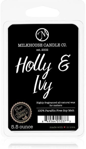 Milkhouse Candle Co. Creamery Holly & Ivy, 155 g, Viasz aromalámpába Illatok lakásba, A lehető legjobb illathatás Milkhouse Candle Co. Creamery Holly & Ivy aromalámpa viasszal érhető el a helyiségben. Mivel a viasz gyorsan és egyszerűen más illatú viaszra cserélhető, bármikor pontosan a hangulatához illő illatot varázsolhat maga köré. Tulajdonságok: fás illat friss i