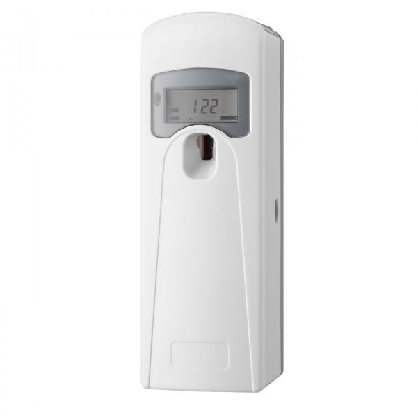 - Automata légfrissítő adagoló ALPHA- LCD kijelző- állítható idő intervallum: 1-60 perc- állítható napi működés 0 - 24 óra- állítható heti működés: hétfő - péntek / hétvége- 85 mm x 85 mm x 242 mm- 2 db 1,5V D góliát elemmel működik (nem tartozék)- a legtöbb 250 - 300 ml-es utántöltővel kompatibilis- ABS műanyag ház