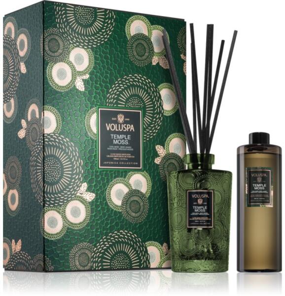 VOLUSPA Japonica Temple Moss, 500 ml, Ajándékszettek Illatok lakásba, Az illatosító VOLUSPA Japonica French Cade Lavender aroma diffúzor a helyiségek illatosításnak igen kellemes módja. Használata: A helyiség illatának intenzitását a folyadékban lévő pálcikák időnkénti megfordításával is fokozhatja. Tartsa távol a gyermekektől. Amennyiben a diffúzor töltete a bőrrel