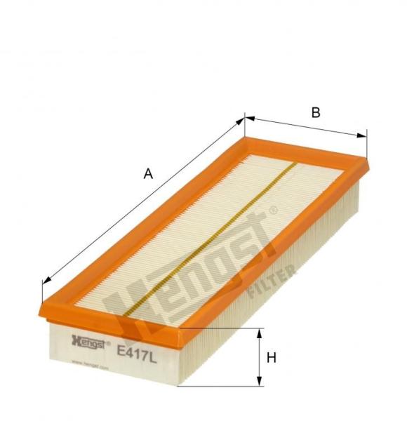 HENGST E417L Szűrő kivitel: Szűrőbetét Hossz [mm]: 314 Szélesség [mm]: 101 Magasság [mm]: 42 EAN: 4030776008661