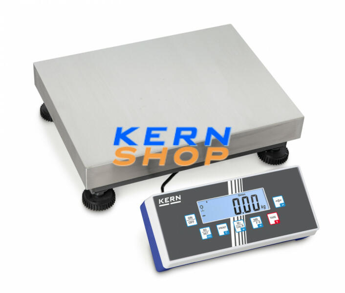 Mérőfelület: 252 x 228mm Asztali mérleg, hátoldalán másodlagos kijelzővel felszerelve. A mérleg KUP (Kern Univerzál Port) kimenttel rendelkezik. KUP: A megfelelő interfész kábellel (rendelhető opcionális tartozék) a mért értékek, adatok átvihetőek hálózatokra, számítógépre, okostelefonokra, táblagépekre, laptopokra nyomtatókra, stb. Ezen túlmenően vezérlőparancsok