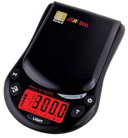 Zsebben hordozható digitális mérleg JScale JSR-300 300g-ig 0,1g pontossággal Méri a súlyt g, dwt, ozt, ct, gn, oz egységekben Fejlett darabszámláló funkció - PCS Nagy, piros háttérvilágítású, fényes kijelző Összecsukható mérőpárna fedele mérőedényként is használható Rozsdamentes acél mérőpárna mérete 5,7cm x 7,2cm, megemelt peremmel a folyadék kifröccsenéséne