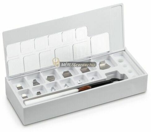 Súlykészlet precíziós mérlegek ellenőrzéséhez, kalibrálásához. A súlyokat használat előtt érdemes statikusan földelni, például fűtéscsőhöz érinteni. Szállítás 3-4 munkanap alatt. Tartalom: 1 mg, 2x2 mg, 5 mg, 10 mg, 2x20 mg, 50 mg, 100 mg, 2x200 mg, 500 mg. A súlyok össztömege: 1,11g. A súlyokkal - nagy pontosságuk megőrzése érdekében - csak tiszta kesztyűben, v
