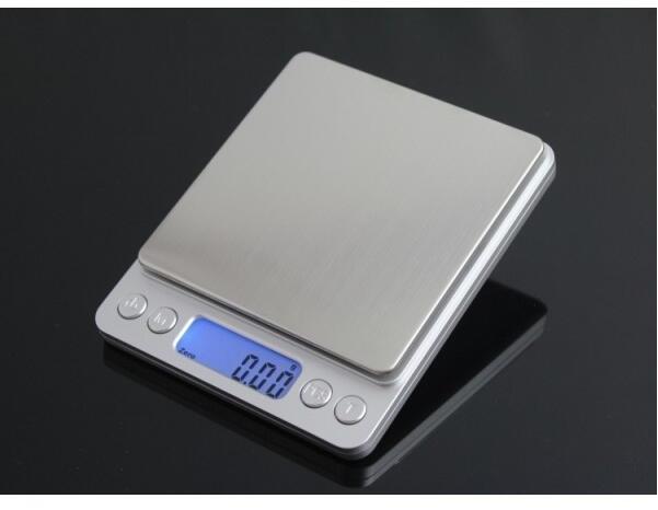 Digitális mérleg 2000g-ig 0,1g pontossággal Kijelzett egységek: g / oz / ozt / dwt / ct / gn Mérőfelület mérete: két mérőedénnyel (10cm x 10cm és 13cm x 11cm) TARE funkció háttérvilágítású kijelző automatikus kikapcsolás rozsdamentes acél mérőfelület darabszámláló funkció 2x AAA elemmel működik (tartozék). Digitális mérleg 2000g-ig 0,1g pontossággal Kijelzett eg