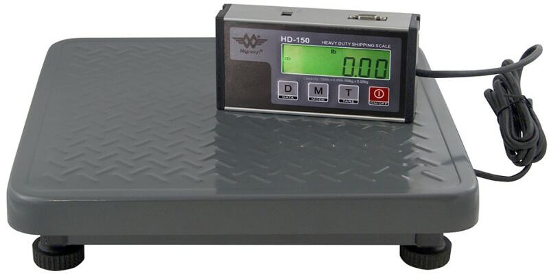 Rendkívül tartós, robusztus MyWeigh HD - 150 csomagmérleg, amely alkalmas csomag- vagy ellenőrző mérlegként 68kg (150lb) súlyig mér 0,02kg (0,05lb) pontossággal Extra tartós, nagyméretű mérőpad 35,5cm x 35,5cm Nagy, könnyen leolvasható, háttérvilágítással ellátott kijelző (16,5cm x 8,3cm), amely kb. 1,8 m-es kábellel csatlakozik a mérőpadhoz, amely falra akasztható vag
