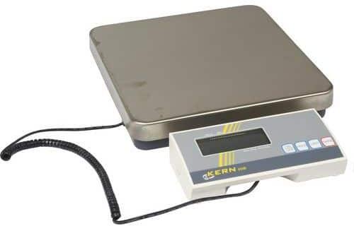 A Kern platform mérleg egyszerű kezelésével alkalmas mindennapi használatra üzemekben, postán stb. A kijelző egység kábelen csatlakozik a könnyebb mozgatás érdekében, és falra is rögzíthető. Tápellátása hálózati adapterrel vagy ceruzaelemekkel történik. A skála beosztása 5 - 100 g. A mérleg minimális terhelései: 10, 10, 20, 50 és 100 g. Üzemi hőmérséklet: 10 –