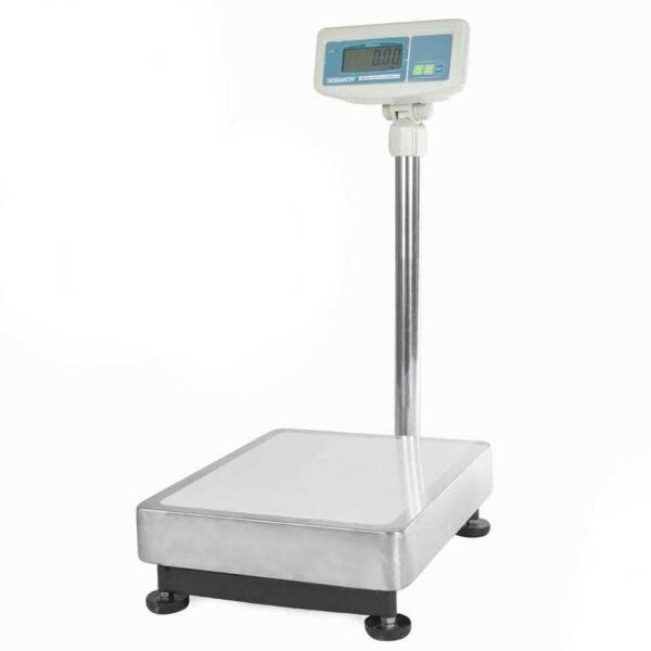 A stabil szerkezetű, rozsdamentes acél platform mérleg alkalmas gyártóüzemekbe, postára stb. A mérleg automatikusan átkapcsol a két mérési tartomány között. A nagy, kivilágított kijelző egység lehetővé teszi a könnyű mozgatást, és falra is rögzíthető. A pontos mérés érdekében a mérleg vízszintmérővel, valamint az egyenetlenségek kiegyenlítésére szolgáló cs