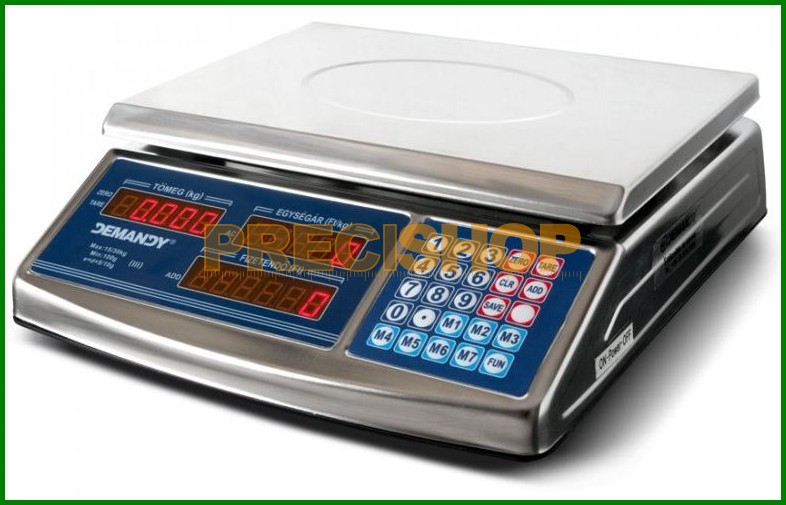 Tára funkció Beépített memória Fizetendő tételek összeadása Rozsdamentes mérőfelület Eladó és vevő oldali LED kijelző Energiatakarékos üzemmód 1 év garancia 2 év hitelesítés Méréshatár: 15/30 kg Osztásérték: 5/10 g Tálca felület mérete: 20x30 cm Közvetlen memória: M1-M7 Tápfeszültség: Beépített akkumulátor