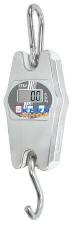 Robosztus akasztós mérleg IP 65 védettséggel Rozsdamentes acél mérlegház IP 65 védettség, TÜV által ellenőrzött mérleg. Ideális áru ki- és beszállításakor ellenőrző mérésekre pl. gyümölcs, vad, hal, alkatrészek. A kijelző automatikusan kijelzi a mért értéket addig, amíg a Hold gombot nyomva tarjuk. Rozsdamentes acél horog és karabíner.