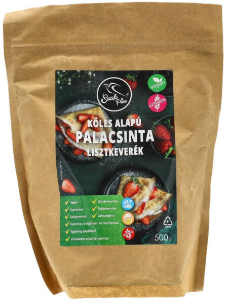 Kölesliszt alapú, zsírszegény, vegán és gluténmentes keverék palacsinta készítéséhez. Nem tartalmaz hozzáadott cukrot, tejet, tojást, szóját, burgonyát, rizst és kukoricát.