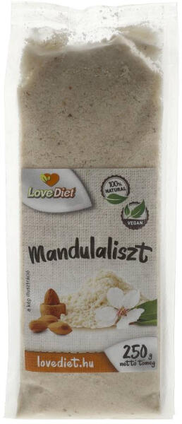 Gluténmentes, vegán mandulaliszt a Love Diettől. 100%-ban természetes, rostban gazdag, növényi alapú liszt, magas fehérjetartalommal. Levegős, lágyabb tészták készítéséhez is!
