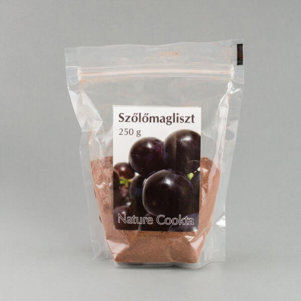 A Nature Cookta Szőlőmagliszt 250g készítése során a szőlőmag olaját vegyszermentesen, hideg sajtolással préselik ki, majd ezt a zsírtalanított magot őrlik lisztté. A szőlő azon kevés növényekhez tartozik, amelyeknek sok része felhasználható. Nem csak nyersen fogyasztható, a gyümölcshúsból borokat készítenek, a magjából pedig olajat és lisztet is előállítanak. A