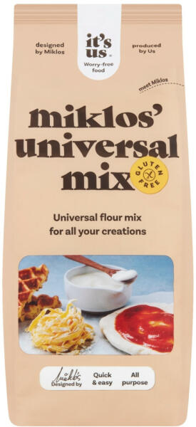 Az It’s us Miklós liszt egy általános célú lisztkeveré, amellyel szinte minden hagyományos recept elkészíthető. IT'S US MIKLOS' UNIVERZÁLIS LISZTKEVERÉK 500G (ALFA-MIX )Az It’s us Miklós liszt egy általános célú lisztkeveré, amellyel szinte minden hagyományos recept elkészíthető. Az egyik legnépszerűbb gluténmentes lisztként vonult be a köztudatba. Az It’s us Mikl
