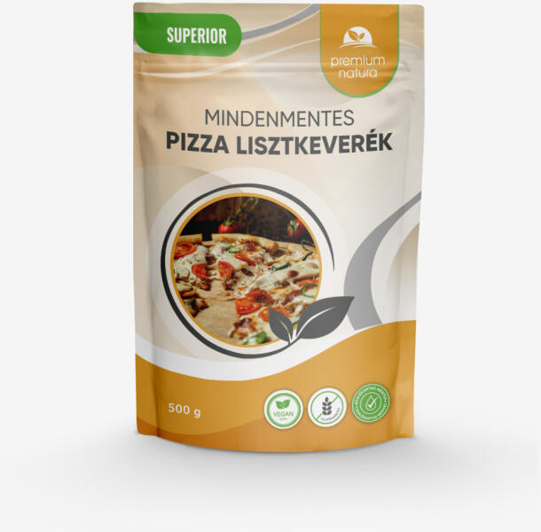 Premium Natura superior mentes pizza lisztkeverék 500 g A termék dióféléket, glutént tartalmazó gabonát, kén-dioxidot vagy szulfitot tartalmazó anyagot, szezámmagot, szójababot, tejet, tojást vagy azokból készült termékeket NEM felhasználó üzemben készült. Premium Natura pékáru kiemelkedő élelmi rost forrás, amely az emésztésre, a vércukor szintre is jótékony hatás