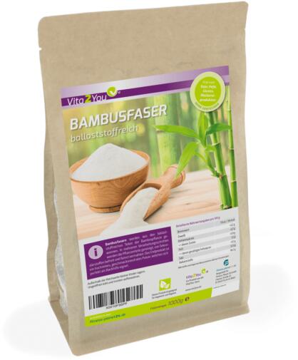 100% bambuszrost lisztA Vita2you bambuszrostliszt alapanyagául szolgáló bambuszrostokat a bambusznövény rostban gazdag részeiből nyerik. Több feldolgozási lépésben a növény részeit megtisztítják és finomra őrlik. A végtermék egy nagy tisztaságú, íztelen por. Szénhidrát- és gluténmentes, vegán, egészséges rostforrás. Rendkívül sokoldalú, kellemetlen mellékízektő