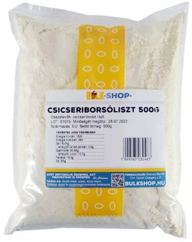 A csicseriborsóból készült liszt rendkívül sokoldalúan felhasználható. Gazdag fehérjében, vitaminokban és ásványi anyag tartalma is kedvező. CSICSERIBORSÓ LISZT 500G A csicseriborsó Indiában, Marokkóban, Dél-Amerikában és Afrika számos országában közkedvelt hüvelyes, mely hazánkban inkább a reformtáplálkozás népszerű alapanyaga. Az egyik legjobb növényi fehérje