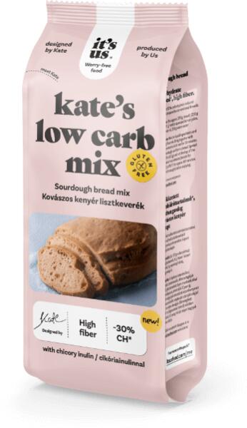 Közeli lejáratú termék! 30%-kal csökkentett szénhidráttartalmú kovászos kenyér süthető a lisztkeverékből a hagyományos kenyerekhez képes a receptúra alapján. IT'S US KATE'S LOW CARB KOVÁSZOS KENYÉR LISZTKEVERÉK 500G 30%-kal csökkentett szénhidráttartalmú kovászos kenyér süthető a lisztkeverékből a hagyományos kenyerekhez képes a receptúra alapján. A felhasználá