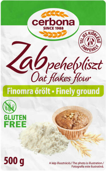 Cerbona Gluténmentes Zabpehelyliszt teljes kiőrlésű zabpehelyből 500 g A finomra őrölt gluténmentes zabpehelyliszt kiváló mindennapi sütéshez és főzéshez azok számára, akik gluténmentes ételeket fogyasztanak. Zabpehelylisztünk teljes kiőrlésű zabpehelyből készül dedikált gluténmentes létesítményünkben, és értékes rostokkal és fehérjével szolgál a fogyasztók