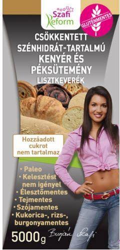 Szafi Reform Gluténmentes lisztkeverék, csökkentett szénhidrát-tartalmú kenyérhez és péksüteményhez 5000 gA lisztkeverék segítségével könnyedén készíthetünk csökkentett szénhidráttartalmú, gluténmentes, élesztőmentes, kelesztés nélküli kenyeret, zsemlét, kalácsot, pizzát, pogácsát illetve sós, vagy édes péksüteményeket, bejglit, valamint palacsinta, piskóta