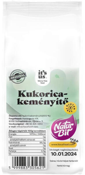 Gluténmentes dúsítóanyagként használhatjuk főzelékek, mártások vagy krémek készítéséhez. A lisztérzékenyek étrendjének egyik alapanyaga. Gluténmentes üzemben csomagolva! A kukoricakeményítőt kukoricából nyerik, a glükóz egyik polimere, színtelen szagtalan fehér por. Az élelmiszeriparban dúsítóanyagként használják, felhasználható mártások vagy krémek kész