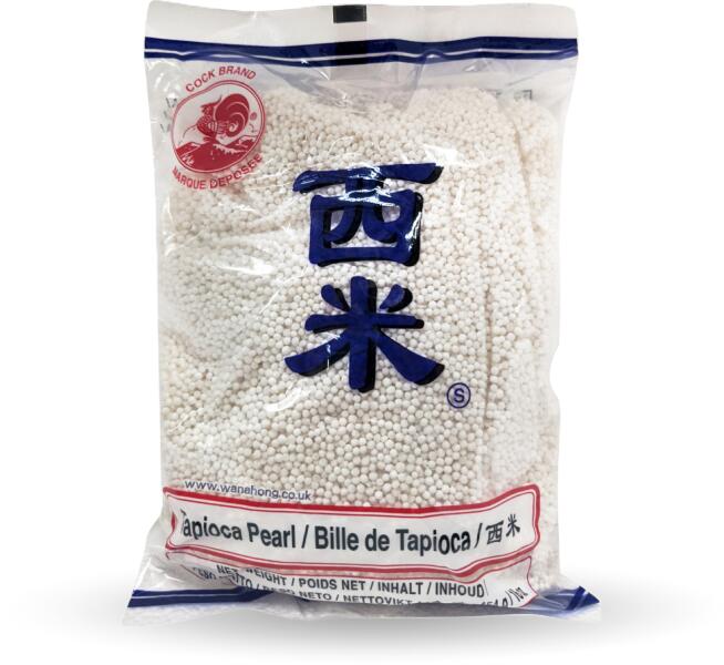 A nagy méretű Cock tápiókagyöngy különféle desszertek és italok kedvelt összetevője, különösen az ázsiai konyhában. Ezek a tápióka gyöngyök manióka gyökérből készülnek, és áttetsző, könnyen rágható textúrájukról ismertek. Általában olyan ételekhez használják, mint a boba tea, tápióka puding és más édes alkotások. Összetevők: tápiókakeményítő, v