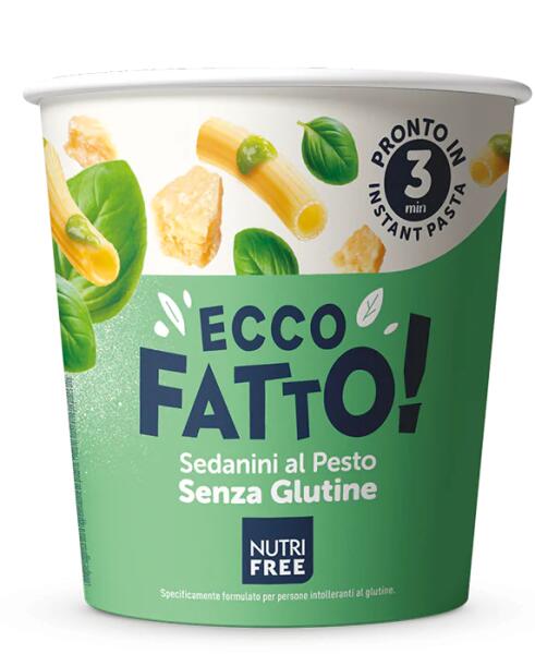 Összetevők: gluténmentes tészta 68,6% (kukoricaliszt, rizsliszt, emulgálószer: zsírsavak mono- és digliceridjei), SAVÓ, burgonyakeményítő, RESZELT SAJT 5,6% ( TEJ, só, oltó), burgonyapehely (dehidratált burgonya), só, bazsalikom 1,6%, KESUDIÓ, extra szűz olívaolaj 0,6%, természetes aroma (TEJ), aromák (TEJ) , fokhagyma, spenót. Nyomokban TOJÁST, SZÓJÁT és MUSTÁRT tartalm