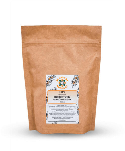 Homoktövisbogyó magjának sajtolása után visszamaradó, olajban, zsírsavakban és ásványi anyagokban gazdag nyers, növényi magőrlemény porított formában (magliszt). Homoktövisbogyó magjának sajtolása után visszamaradó, olajban, zsírsavakban és ásványi anyagokban gazdag nyers, növényi magőrlemény porított formában (magliszt). Pára- és aromazáró, visszazárható pap