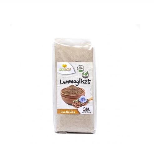 A Love Diet lenmagliszt magas beltartalmú liszt, ballasztanyagban, növényi fehérjében gazdag. Testünk számára fontos ásványi anyagokat, vitaminokat, és sok magnéziumot tartalmaz. Jelentős omega-3 forrás. Nyomokban földimogyorót, dióféléket és szezámmagot tartalmazhat. Átlagos tápérték 100g termékben: Energiatartalom:1419kJ/341kcal Zsír:6,4g amelyből telített:0,6g Szén