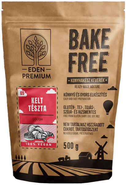 Gluténmentes, tejmentes, tojásmentes, szójamentes, kukoricaliszt-, és kukoricakeményítő-mentes, burgonyamentes, rizsmentes, vegán, hozzáadott zsiradék nélküli kenyerek és péksütemények készítéséhez. Elkészítési javaslat: ZSÍRMENTES ALAPRECEPT: Hozzávalók 1 db körülbelül 390 grammos fonott kalácshoz: -200 g lisztkeverék -200 g langyos víz -2,5 g Eden Premium fekete s