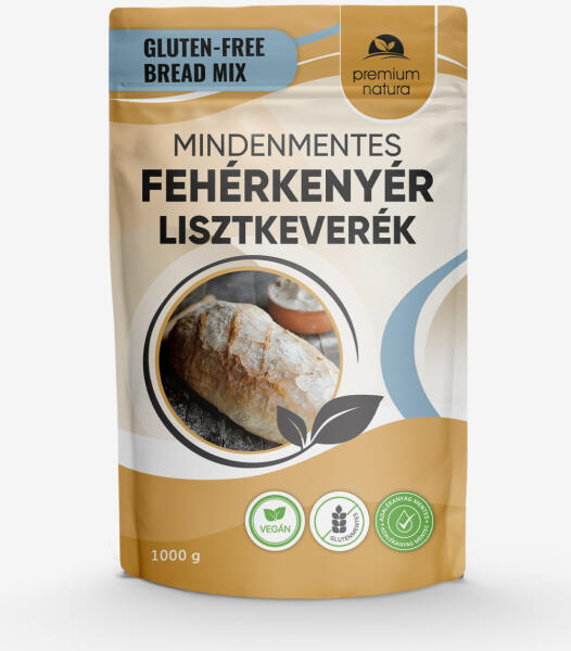 Premium Natura mindenmentes fehérkenyér lisztkeverék 1000 g A termék dióféléket, glutént tartalmazó gabonát, kén-dioxidot vagy szulfitot tartalmazó anyagot, szezámmagot, szójababot, tejet, tojást vagy azokból készült termékeket NEM felhasználó üzemben készült. Premium Natura pékáru kiemelkedő élelmi rost forrás, amely az emésztésre, a vércukor szintre is jótékony